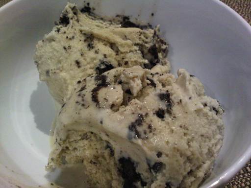 tem de deixar no congelador um pouco mais, mas ficou ótimo… e usamos cacau em pó no lugar do chocolate.