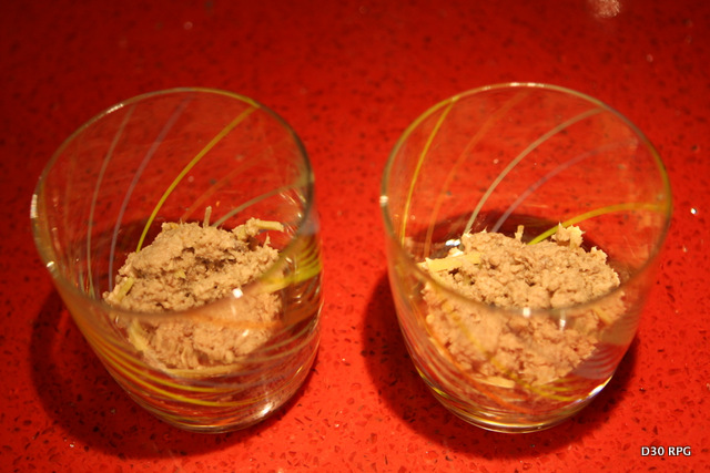 Voilá, está pronta sua Verrine, é só colocar num copo bonito em camadas e decorar. Isso pode ser uma entrada no seu jantar romântico, ou o lanche do RPG se planejado antes. A abóbora pode ficar pronta esperando dentro do microondas, e o resto espera na geladeira.