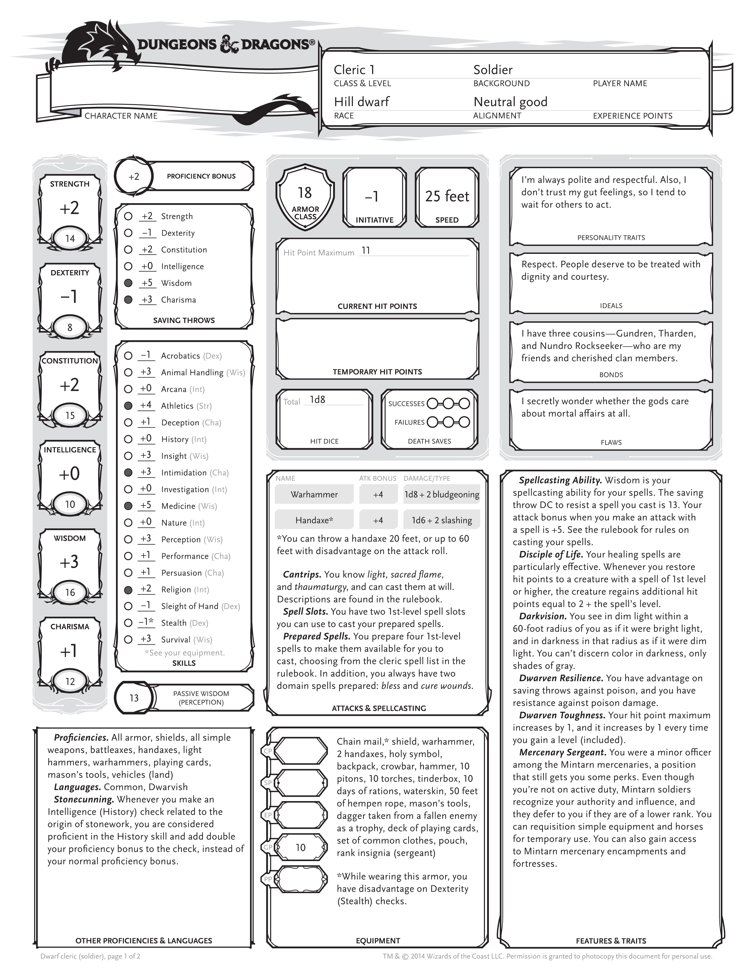 Um PDF todo diagramado de 110 páginas para download gratuito, com as regras básicas para jogar. Raças e classes básicas, com sub-raças e arquétipos para as classes. Anões (Montanha e Colina), Elfos (Floresta e Nobres), Humanos e Halflings (Pés-leves e Pesados) sendo Guerreiro (Campeão), Mago (Evocação), Clérigo (Vida), e Ladino (Ladrão). Regras para criação de pergonagens dos níveis 1 ao 20, e também monstros, itens mágicos e um guia pro mestre planejar aventuras.