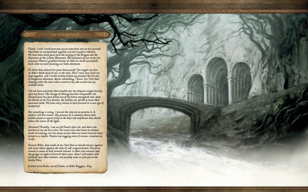 Bilbo está de volta ao Condado, Bard é rei de Dale e recruta aventureiros para ajudar a restaurar a glória do norte, e Mirkwood aumenta seu poder com a escuridão.