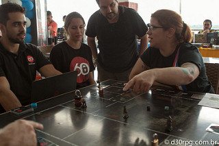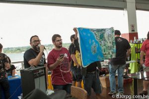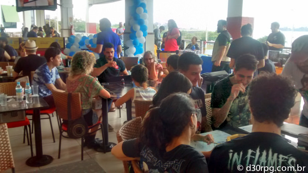 A alegria também foi de ver muita gente que não mestrava há muito tempo e se arriscou a voltar no Encontro. O formato de aventura para encontros é muito legal para quem quer testar suas habilidades nessa área. Também foi massa ver alguns jogadores veteranos, que há tempos não participavam de uma sessão de jogo, aparecendo para rolar dados. Teve até um rapaz que se mudou do nordeste para Brasília há três anos e não conseguia mais ninguém para jogar… até, por acaso, conhecer o D30 num passeio rápido pelo shopping com a esposa.