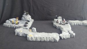 Muita gente cria suas peças de cenário pensando em aventuras específicas que está mestrando. Outros, como eu, fazem peças que sirvam para qualquer momento. Por exemplo, tenho feito peças modulares de terreno rochoso e gelado para usar de várias maneiras e em várias situações. Assim como pedras, altares, etc (esses últimos chamados de “dungeon dressing”).