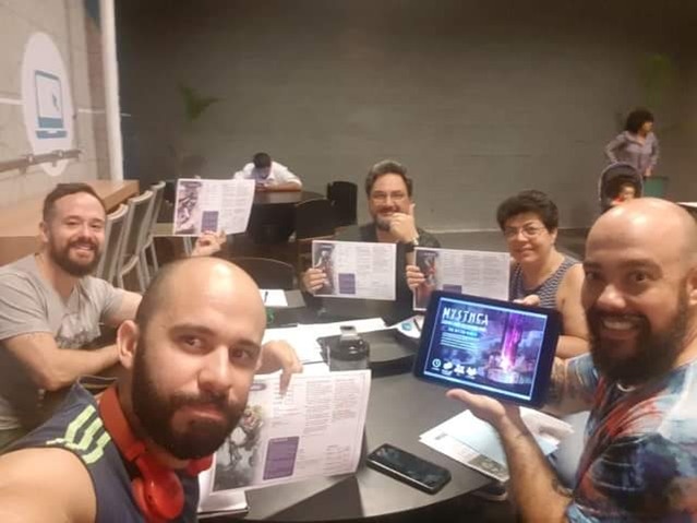 E foi dessa forma, em com muito pânico, que narrei o quickstart de Mysthea para um grupo de veteranos dos minduins (só mestre cabeçudos!) e um grupo de pré-adolescentes novatos no RPG no último D30. No final tudo deu certo e a sensação de experimentar algo novo, mas conhecido e contribuir para o crescimento desse sistema me deixou contente e com sentimento de missão cumprida. A experiência de poder mostrar uma nova ambientação, assim como um sistema parcialmente conhecido mas com muitas inovações e crescimentos me deixou muito animado e sinceramente encantado!