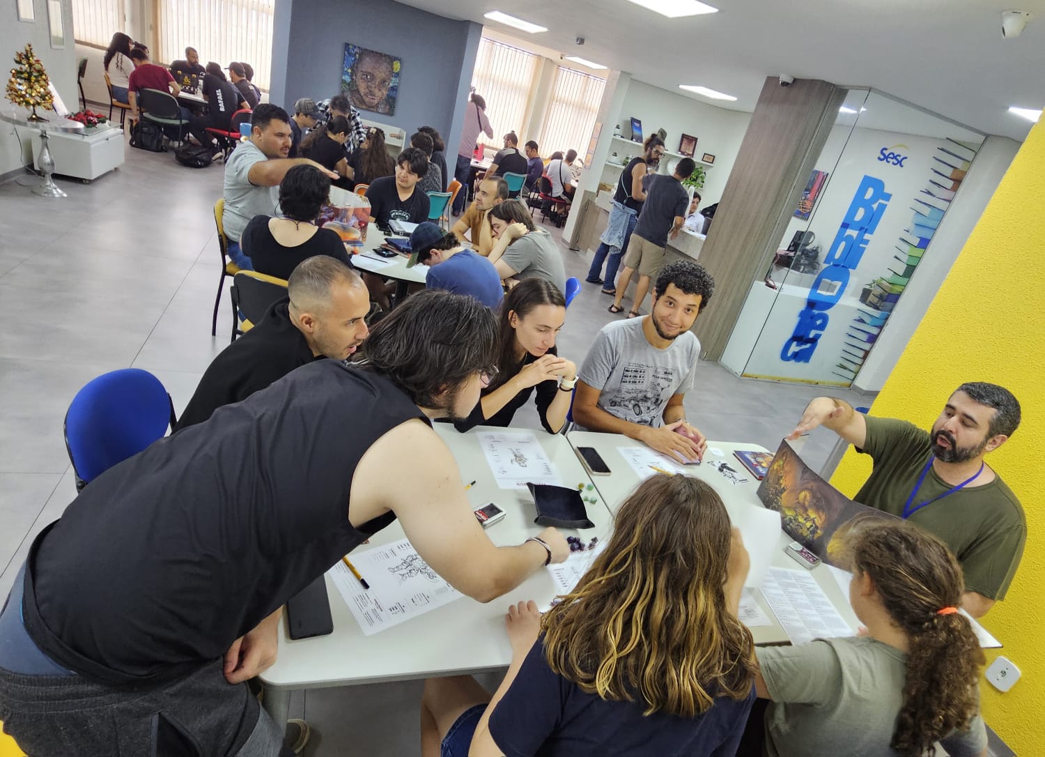 O 88º Encontro D30 teve como tema a “Revolução Punk” em suas diversas concepções e a realização no Sesc foi um sucesso absoluto de público, com todas as mesas lotadas e novas precisando abrir de última hora para acomodar mais gente. Ao todo, contabilizamos mais de 160 pessoas circulando ao longo do dia, jogando e construindo esse evento conosco — somando jogadores, mestres e os 17 heróis dos bastidores (lojistas, organização do D30 e a incansável equipe do Sesc).
